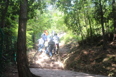 9點15分,大部分客戶都到位了,金辰軟件KIS事業(yè)部負責(zé)人倪小紅集合大家做了活動說明,強調(diào)活動的意義,同時感謝客戶的積極參與,大體介紹了金蝶云之家和移動應(yīng)用,隨著一聲吹號聲,大家爭先恐后地向尖峰山山頂進發(fā),每人手上綁著統(tǒng)一的紅絲帶在一路上顯得格外耀眼,工作人員舉著迎風(fēng)飄揚的金蝶標(biāo)志旗告訴大家是金蝶軟件在舉辦活動,很多爬山著豎著大拇指說金蝶軟件真不錯!,活動非常有意義!