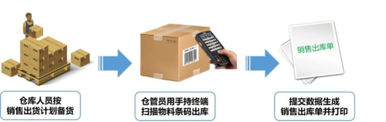 銷售人員開具發(fā)貨通知單掛至感應(yīng)門處,叉車人員根據(jù)指引找到貨物,操作叉車經(jīng)過倉庫出貨門,感應(yīng)設(shè)備自動感應(yīng)產(chǎn)品信息、產(chǎn)品數(shù)量、校驗(yàn)是否和發(fā)貨通知單一致等。自動判定是直接發(fā)貨業(yè)務(wù)還是調(diào)撥業(yè)務(wù),提交后自動生成系統(tǒng)銷售出庫單。