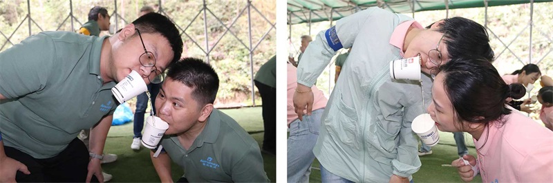 紙杯傳水、快樂(lè)加碼,在傳遞的過(guò)程中,有些伙伴心細(xì)配合很好,非常完美地將自己杯中的水全部傳遞給同伴,但也有伙伴沒(méi)有掌握規(guī)律,在傳遞的過(guò)程中被潑了一臉的水。